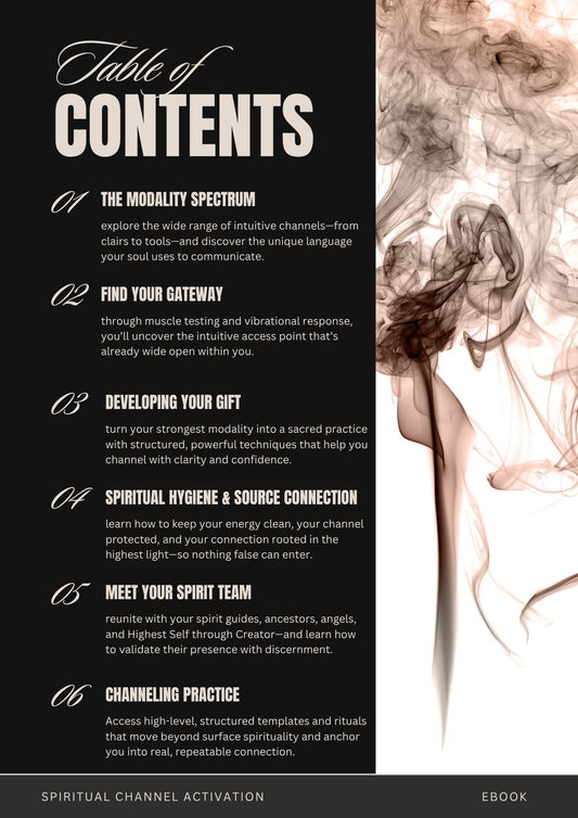Each e-book in this collection is a powerful tool for self-healing, spiritual awakening, and unlocking your intuitive gifts. Whether you’re just beginning your path or deepening your practice, these guides are designed to meet you where you are—with grounded wisdom, practical steps, and channeled insight you can return to anytime.
